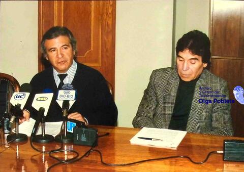 Carlos Cifuentes y Darío Vásquez en conferencia de prensa en la sede nacional del gremio.