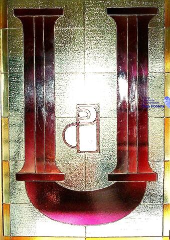 Logo del Colegio de Profesores, ubicado en un ventanal de la sede nacional del gremio.