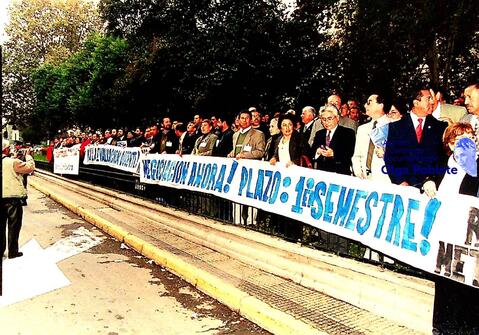 Docentes de la región metropolitana protestan frente al Ministerio de Educación durante proceso de negociación.